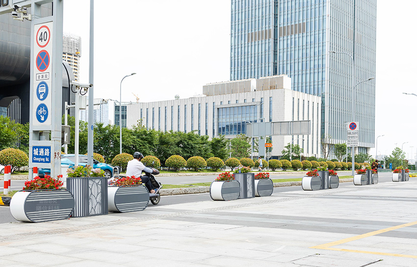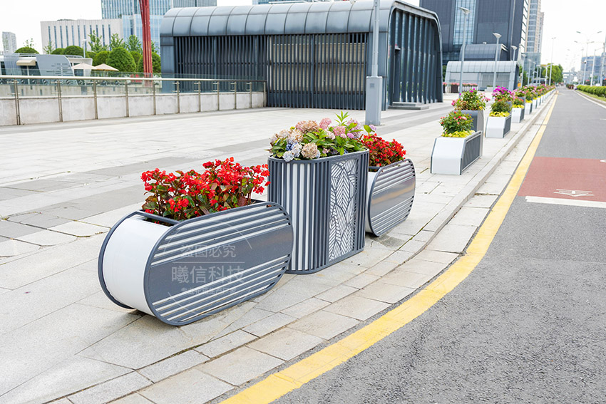 這款花箱采用鈑金材質,具有高承重、高強度、高硬度特點,實現了道路景觀的美觀與升級。